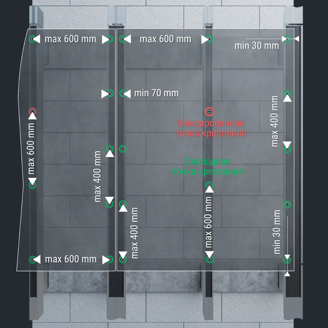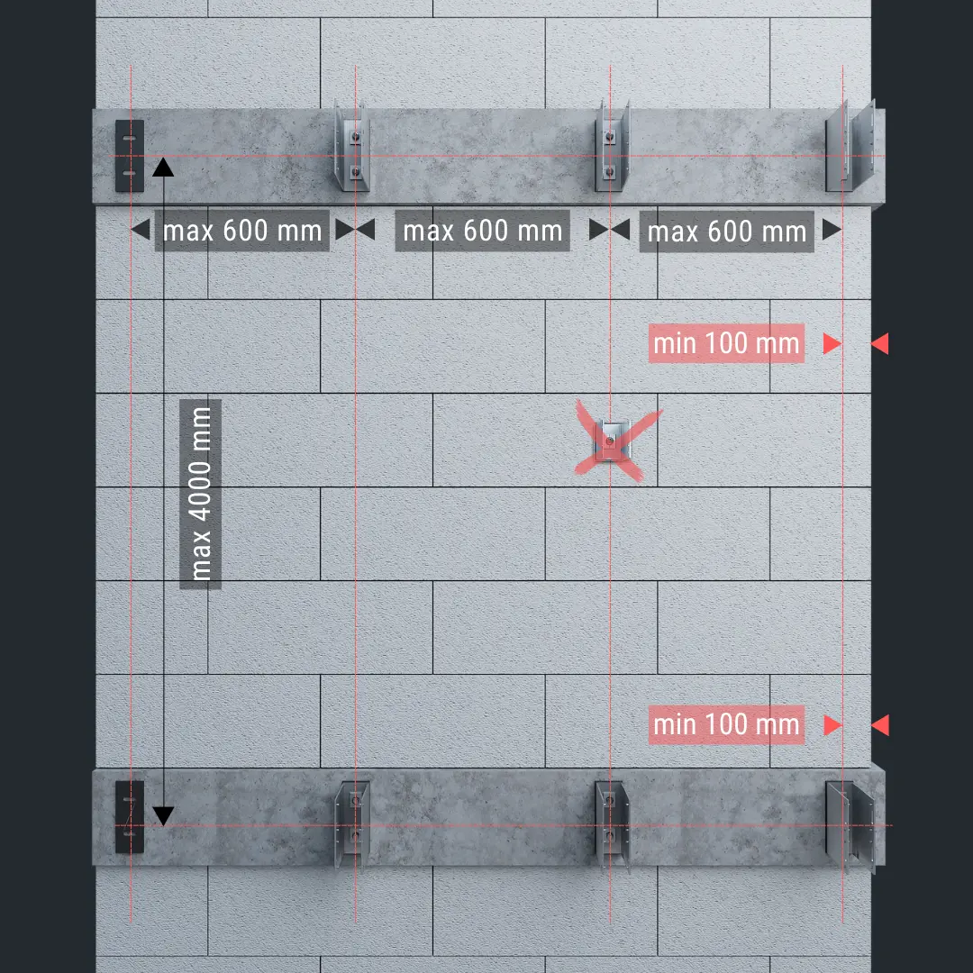 Разметка точек анкерирования для установки несущих и опорных кронштейнов на стене здания