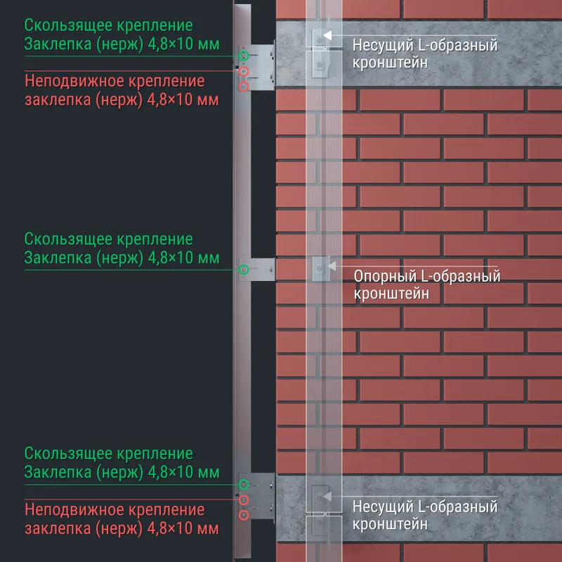 монтаж алюминиевых кронштейнов на стену из полнотелого кирпича монолита