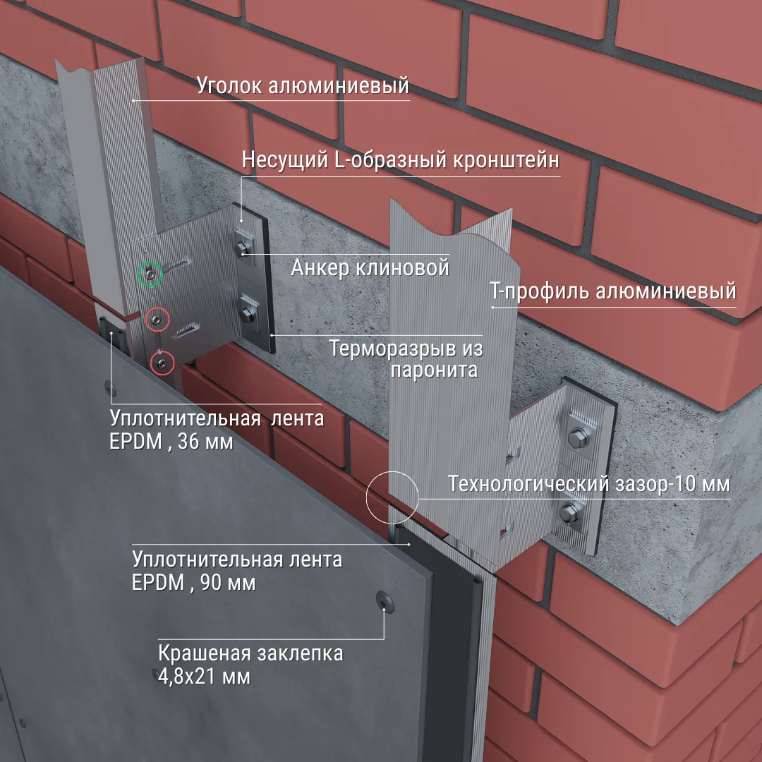 Крепление к стене несущих и опорных кронштейнов через терморазрыв из паронита