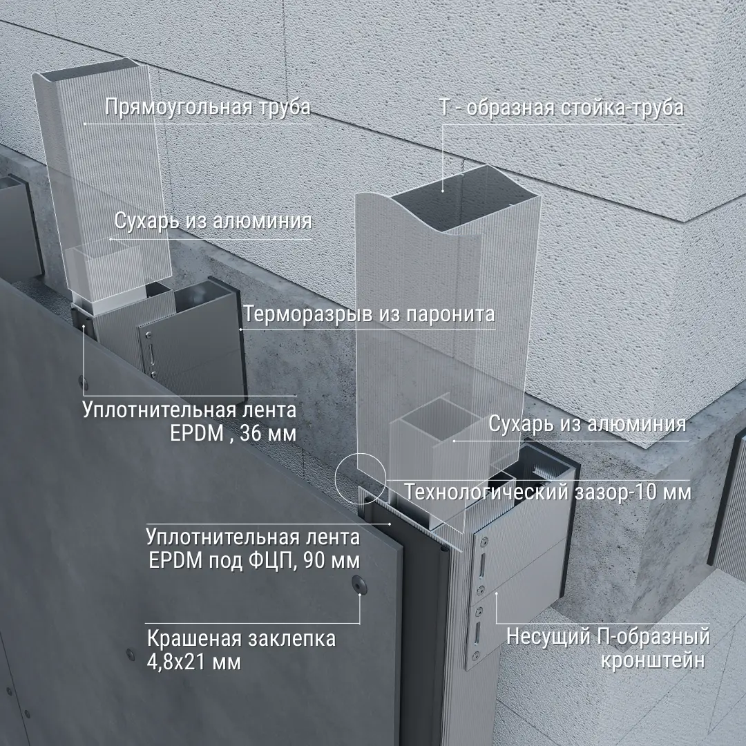 Навесной фасад позволяет создавать уникальную и привлекательную архитектуру здания, а также экономить до 20% затрат на отопление и кондиционирование.