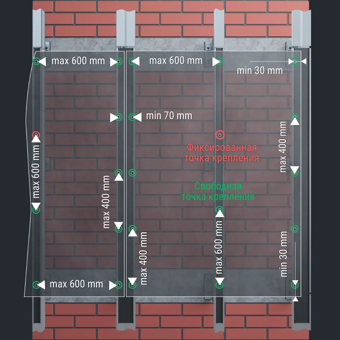 Для крепления к стене несущих и опорных кронштейнов в размеченных точках просверливают отверстия, диаметром и глубиной соответствующие анкерным дюбелям, которые прошли испытания на прочность для данного вида стенового ограждения