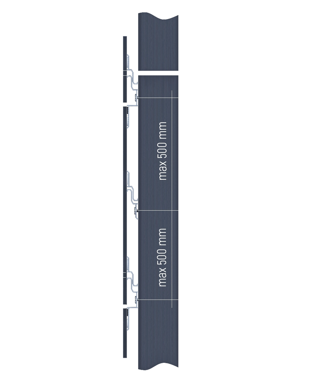 Механизм работы вентилируемого фасада (НВФ) основан на эффекте естественной вентиляции. После монтажа фасадной системы между несущей стеной с утеплителем и облицовочными панелями формируется вертикальный вентиляционный зазор шириной 40–60 мм.
