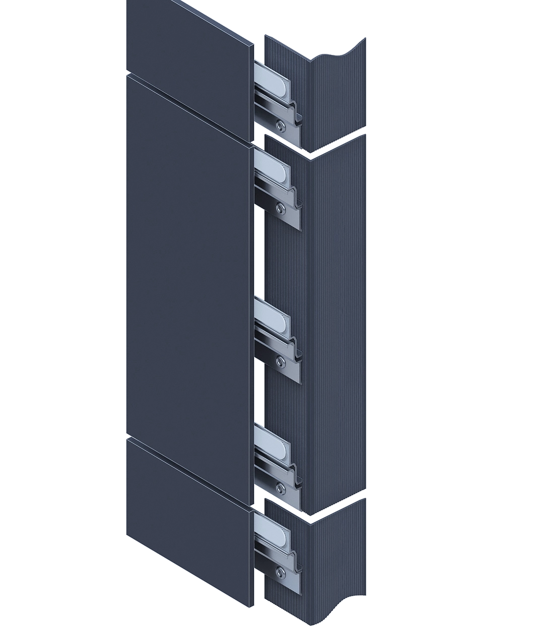 Фасадная подсистема НВФ состоит из алюминиевых или оцинкованных кронштейнов, вертикальных направляющих профилей, крепежных элементов, терморазрывов, теплоизоляции и облицовки. Все элементы должны подбираться с учётом типа несущей стены (бетон, кирпич, газобетон), высоты здания, ветрового района и требований по сейсмостойкости.